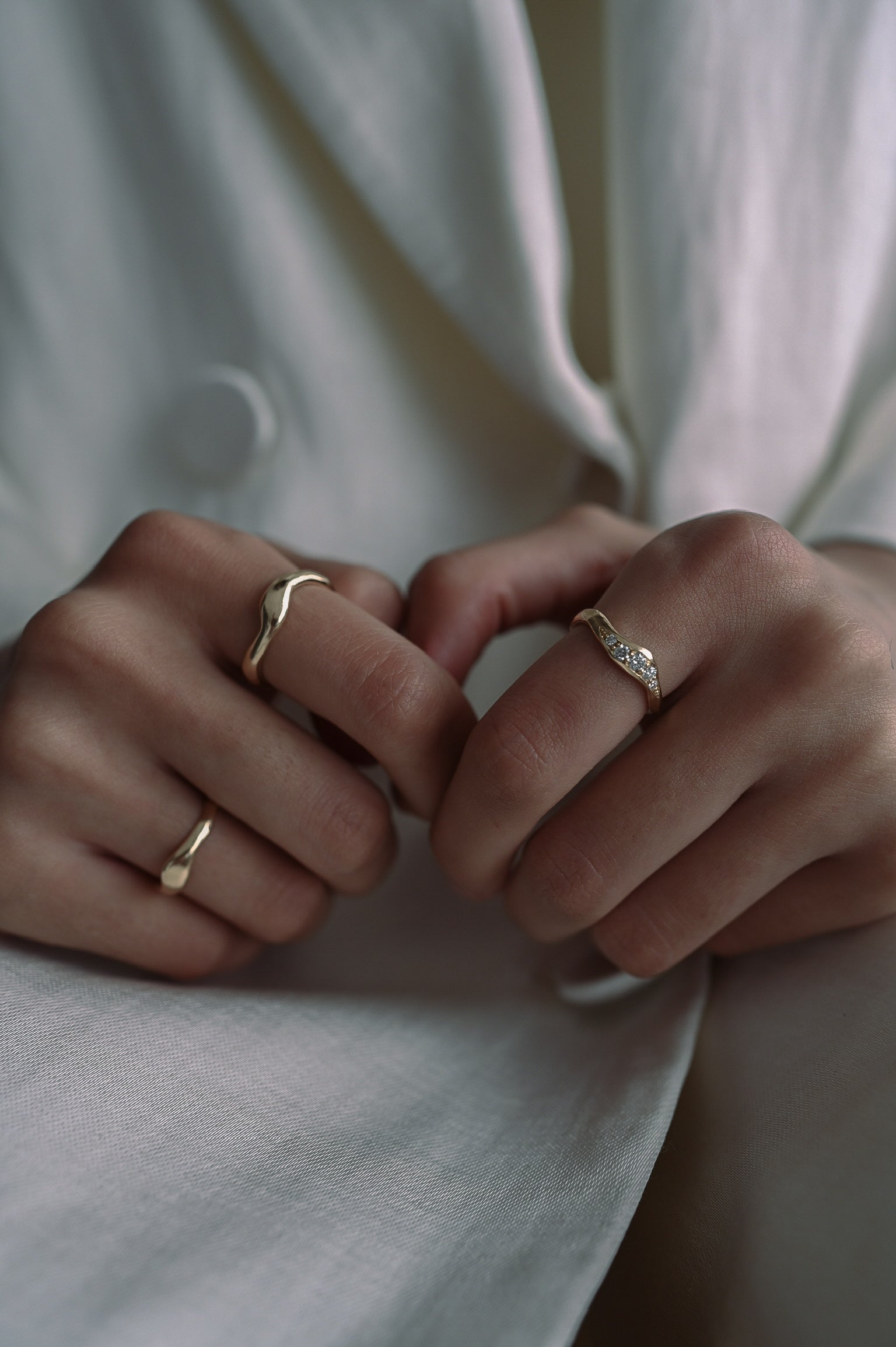 Jeg arbejder primært i sterlingsølv samt 8, 14 og 18 karat guld og hvidguld – alt sammen ædelmetal af høj kvalitet. Nogle smykker kombineres med ædelsten, alt afhængigt af design og ønsker.