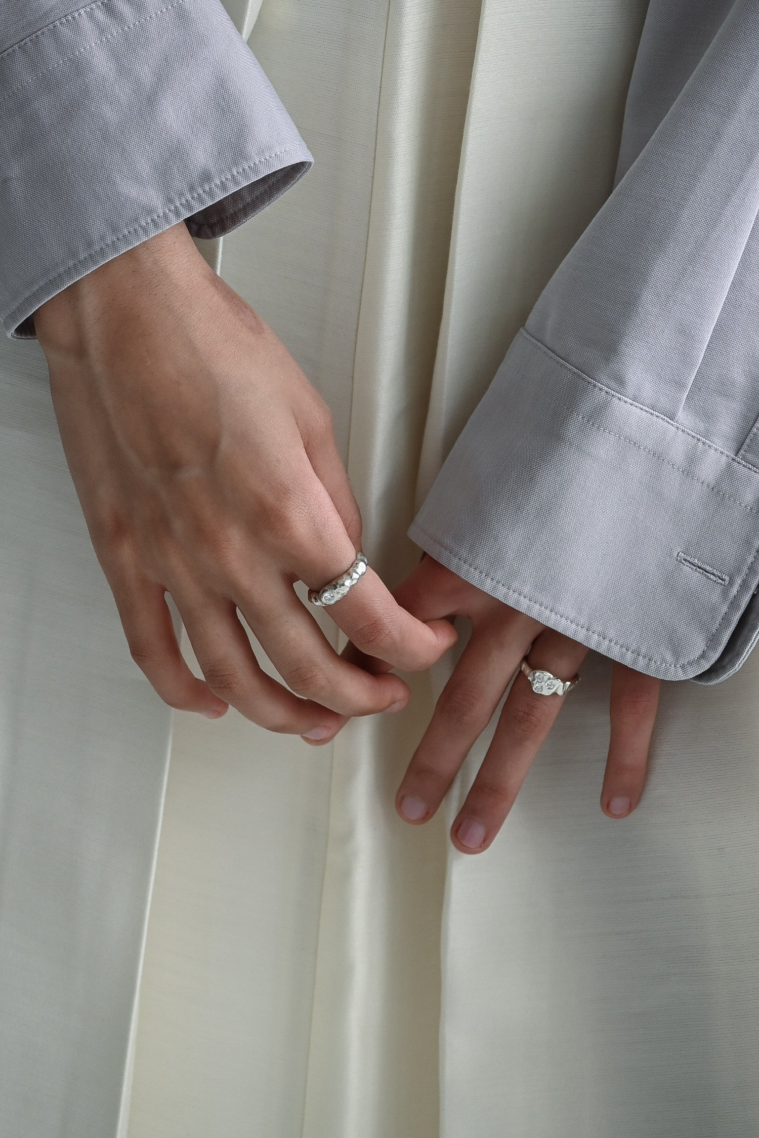 Beate ringens organiske form gør at den sidder flot på fingeren, strukturen i ringen giver den en skinnende effekt.